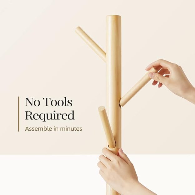 Pipishell Coat Rack Sturdy Wooden Coat Rack Stand, Adjustable Coat Tree, Free Standing Tree Hanger with 4 Sections & 8 Hooks, for Home/Bedroom/Office/Hallway/Entryway